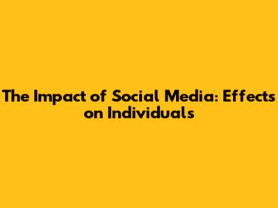 The Impact Of Social Media: Effects On Individuals