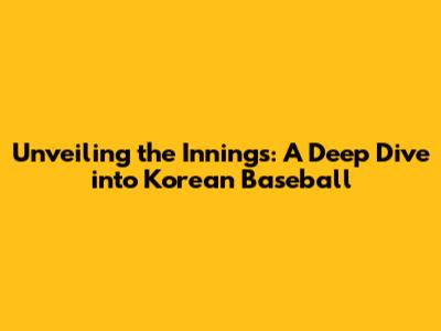 Unveiling The Innings: A Deep Dive Into Korean Baseball
